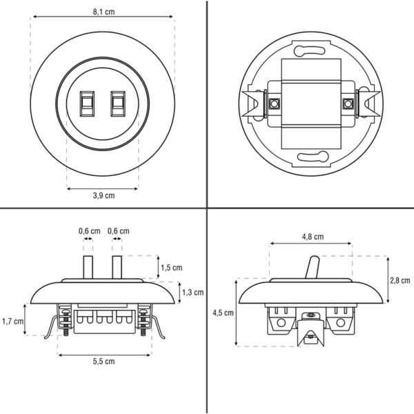 Dankzij de twee afzonderlijke schakelaars is hij geschikt voor een lamp met minimaal twee kappen of voor twee verschillende lichtbronnen. De originele ronde vorm maakt de schakelaar
