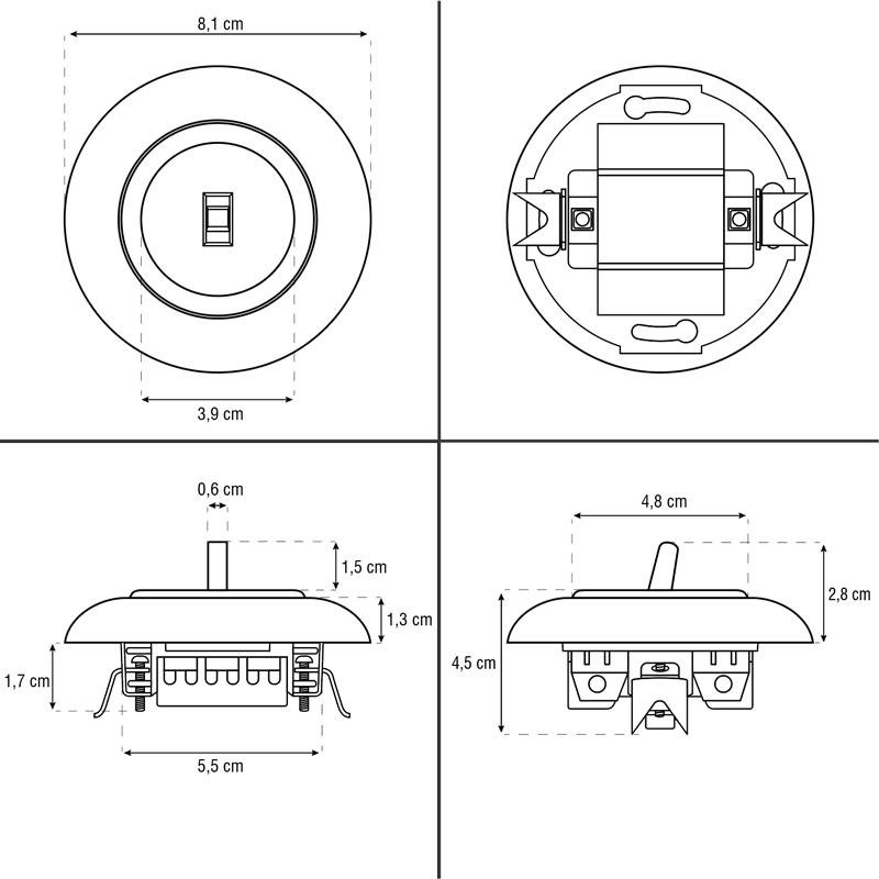 Een kruisschakelaar is perfect voor grote huizen of kamers waarin je het licht vanuit meerdere plekken wilt bedienen. Om goed te functioneren, moet deze schakelaar tussen twee wisselschakelaars worden geplaatst. Je kunt één of meerdere kruisschakelaars installeren, afhankelijk van je behoeften. De unieke stijl van de LOFT-serie past perfect bij zowel industriële als retro-interieurs.